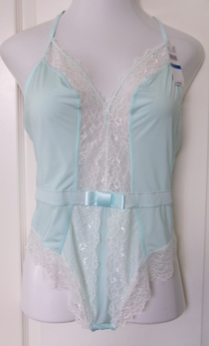 Cassandra body suit Baby Blue size Large thong back with snaps at the crotch