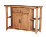 The Cassidy collection features a rustic, modern design with industrial touches. Classy enough to dress up for the holidays but casual enough to hold your everyday meals, this group is prepared to meet your needs and your decorating aesthetic whatever they may be. Crafted from Acacia wood solids and features a Iron Brush Antique Natural (brown) finish. The Cassidy server provides ample storage with shelves, drawers and cabinet space. Coordinates with other pieces in the Cassidy dining collection sold separately.
