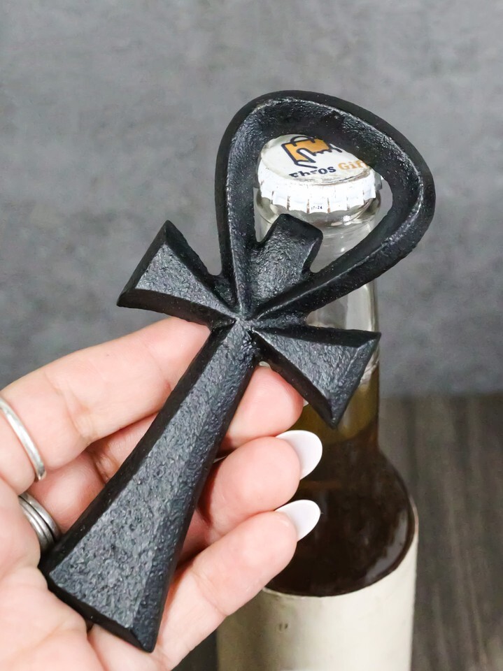 - Cast Iron Black Egyptian Mystic Hieroglyph Ankh Key Hand Bottle Cap Opener