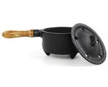Made of cast iron and affixed with a wooden handle, this incense burner is perfect for burning all of your favorite powder, resin, cone, and granular incense upon charcoal and sand, and cleaning up the mess after. Similar to a simple cast iron pot, the burner measures approximately 2.5 inches in diameter and closes with a matching lid. To use, rest its three legs on a burn-safe location, and use the handle to safely dispose of ash when it has grown hot. The entire burner stands only about 2 inches tall, with the handle measuring about 4.25 inches long.