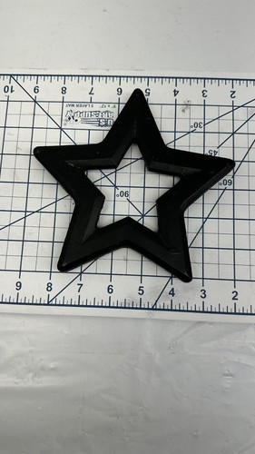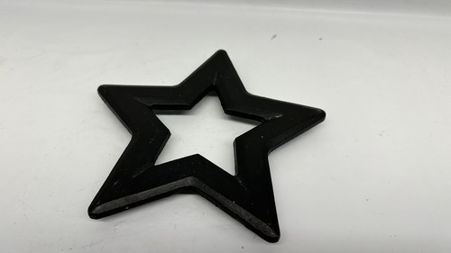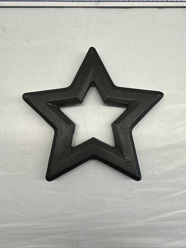 This Cast Iron Trivet features a unique abstract shape with star footed design, measuring 6.5 inches in length. The trivet is in a vintage style, with a matte black finish and is an original piece from the United States. It is suitable for all occasions and is a great addition to any kitchen or home decor, especially for fans of the Dallas Cowboys with its themed decoration. Made of sturdy cast iron, this trivet is both decorative and functional for protecting surfaces from hot pots and pans.
