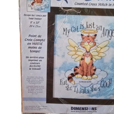 - Cat Angel Cross Stitch Kit Dimensions 8x10 Counted Quick Creations New Sealed