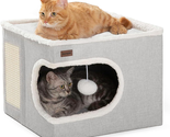 - Cat Bed for Indoor Cats Cube House, Covered Cat Cave Beds & Furniture with Scra