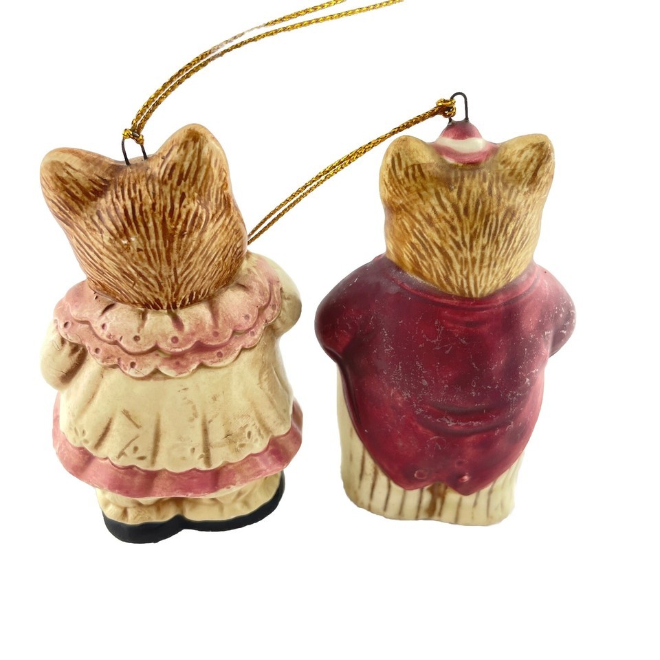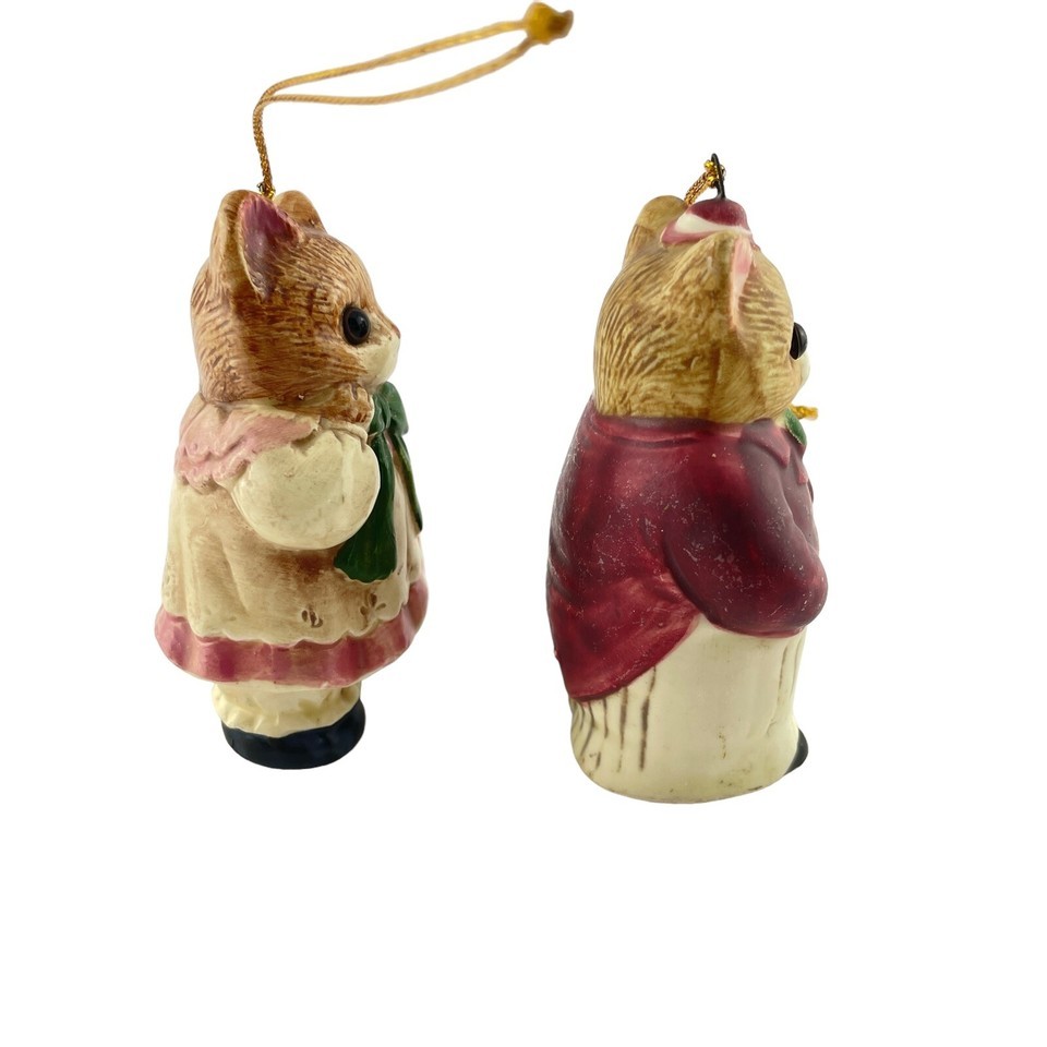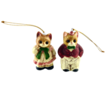 Pair of Ceramic Kitty Cat Christmas Ornaments