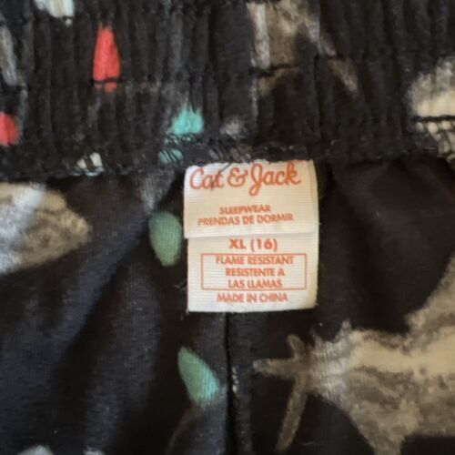 - Cat & Jack Boys Black Gray Sharks Christmas Lights Fleece Pajama Pants 16