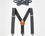Give your stylish guy the perfect finishing touch to accessorize his looks with the Black/Gray Suspender Set from Cat and Jack?. Featuring a soft and stretchy construction for a comfortable and durable design, this suspender and bow tie set includes a suspender with an adjustable buckle/clip and a bow tie with snap closure for easy wear. The solid black color with herringbone patterned stripes offers a classic look, and the solid gray hue seamlessly pairs with a variety of outfits in his closet. He can pair it with his go-to jeans and tee for a smart casual outfit or chinos and a button-down shirt for a dressier look. Size: One Size Fits Most. Gender: male. Age Group: kids. Pattern: herringbone/solid.