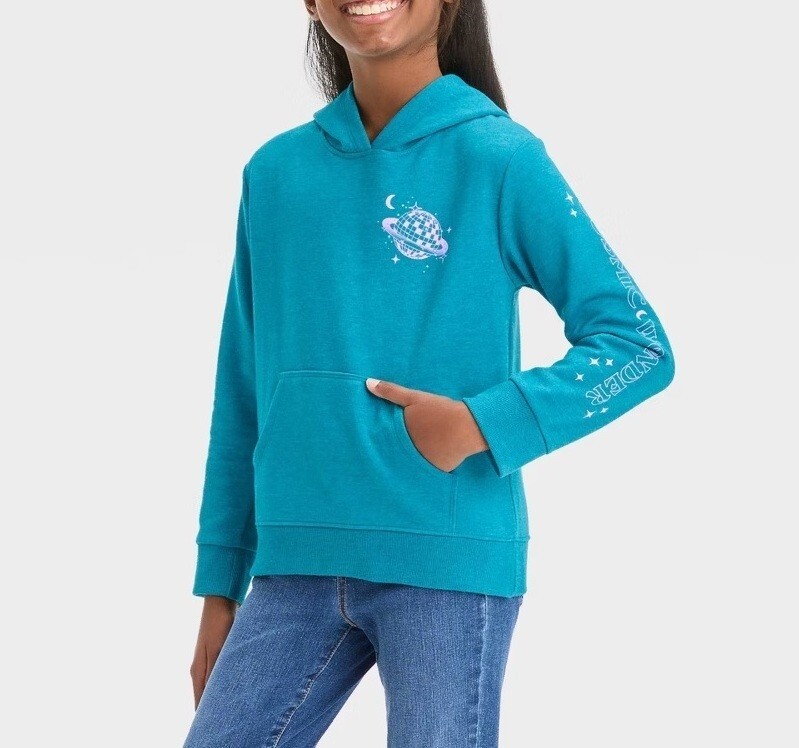 - Cat & Jack Girls' Fleece Pullover Hoodie Cosmic Wonder Teal Blue Sz XXL (16/18)