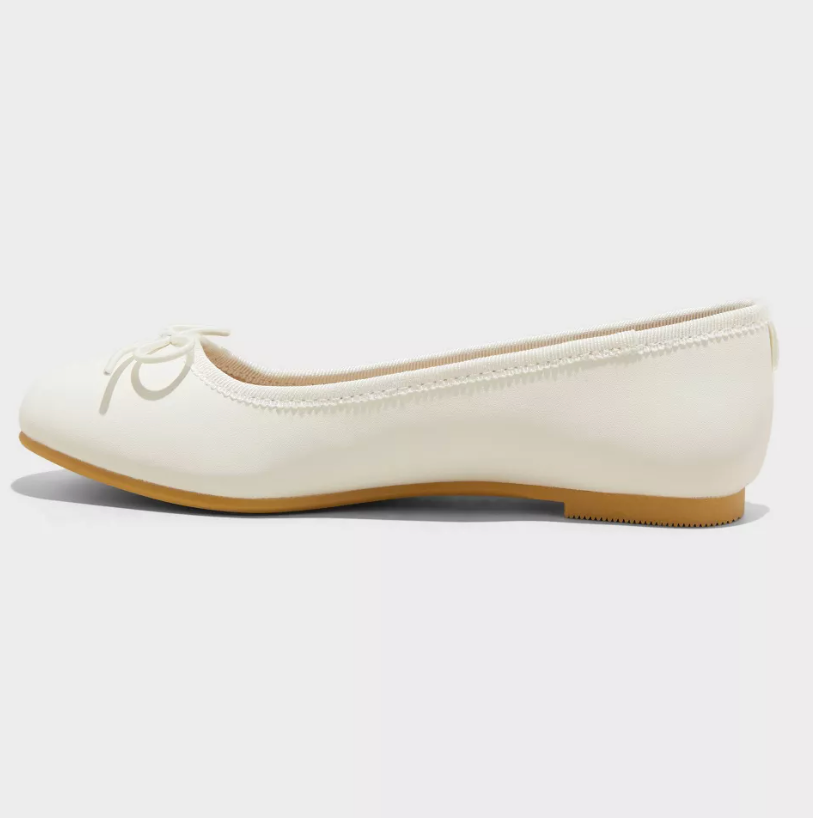 Die Schuhe von Cat Jack Girl sind stilvolle Ballettflats in einer soliden weißen Farbe, die einen Abschluss für einfache Kleidung bietet.