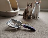 Cat Litter Scoop Metal Cat Scooper Long Handle Poop Sifting Mesh Shovel Aluminum Alloy for Litter Box Purple (L)