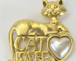 - Cat Lover Brooch Pin Danecraft Vintage 80s Jewelry Feline Goldtone Faux Pearl