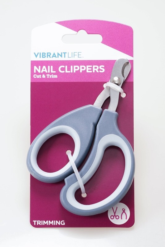 Ergonomic Handle Larger Ergonomic Handle - portable nail clippers Designed to make nail clipping easy and less stressful for you and your pet Stainless-steel cutting edges and built-in blade notches help keep the nail in place while cutting Best suited for cats Vibrant Life Brand Pet Claw Clippers