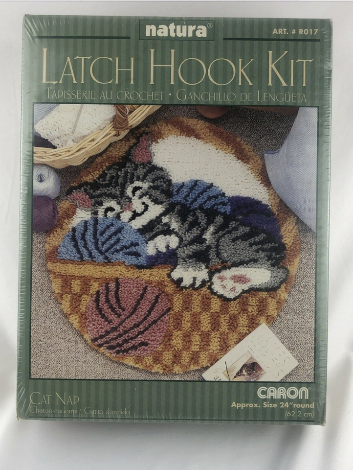 Cat Nap Wonder Art CARON #R017 Latch Hook Kit 24" Round Cat Nap new sealed condition. Super cute latch hook kit for the kitty cat lover! Please see all gallery photos. We are a smoke free, pet friendly home. Have a great day!