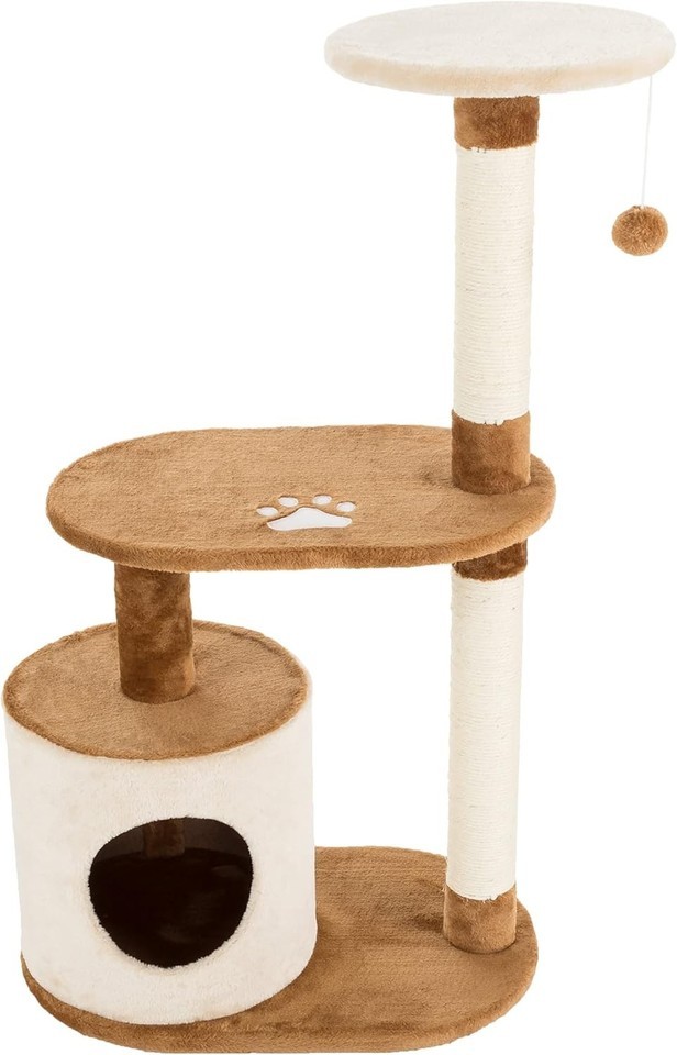- Cat Tree Condo 3 Tier with Condo and Scratching Posts, 37.5", Brown and Tan