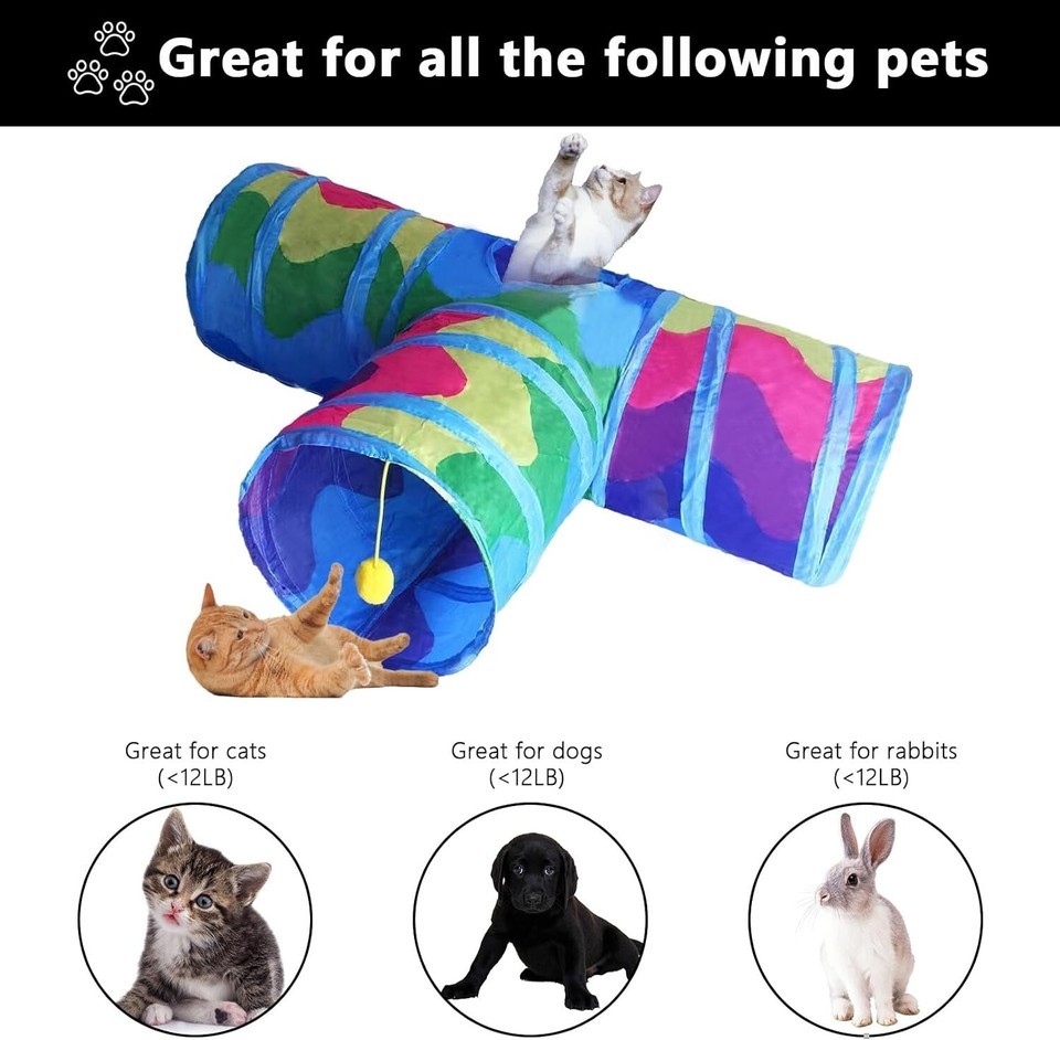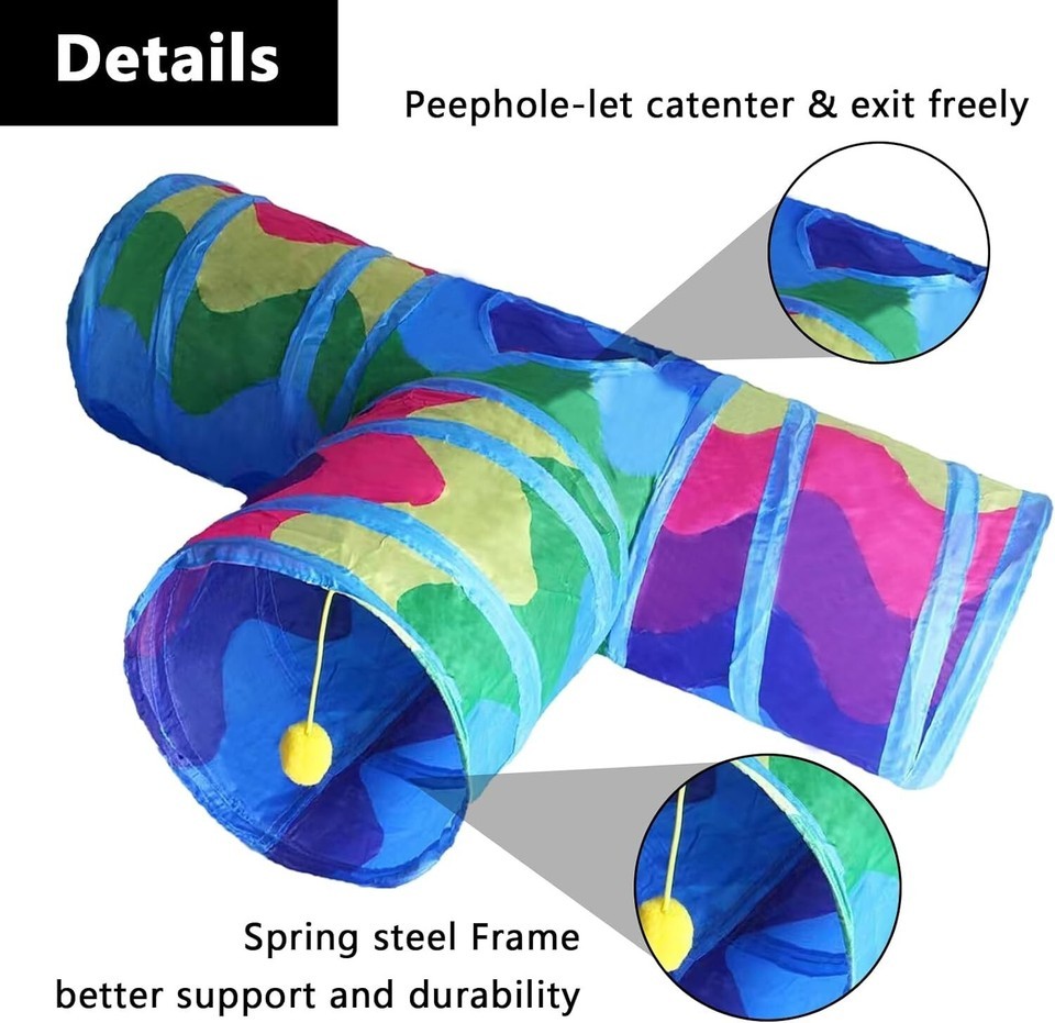 ?3 Ways Play Tunnel :The design of three spacious passages and the design of bells on the side of the middle opening give your pet several play options. It is an indoor toy that your pet deserves.