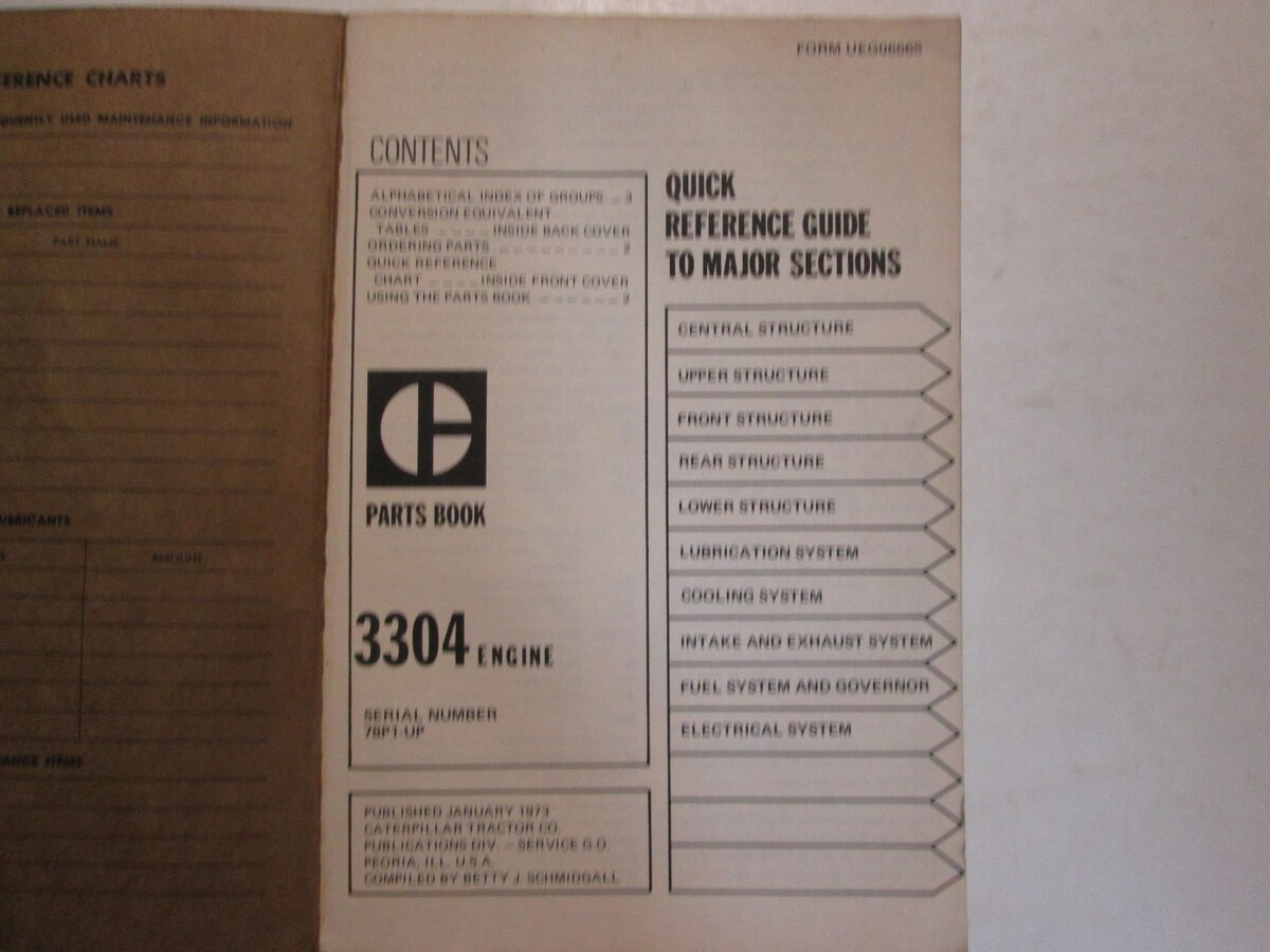 - Caterpillar 3304 Engine Parts Book Serial Numbers 78P1-UP WATER DAMAGE USED OEM
