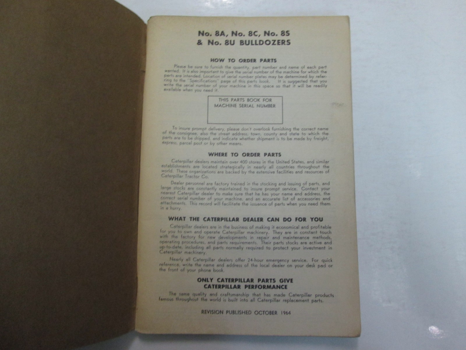 - Caterpillar 8A 8C 8S 8U Bulldozer Parts Book Manual 1964 DAMAGED WRITING OEM