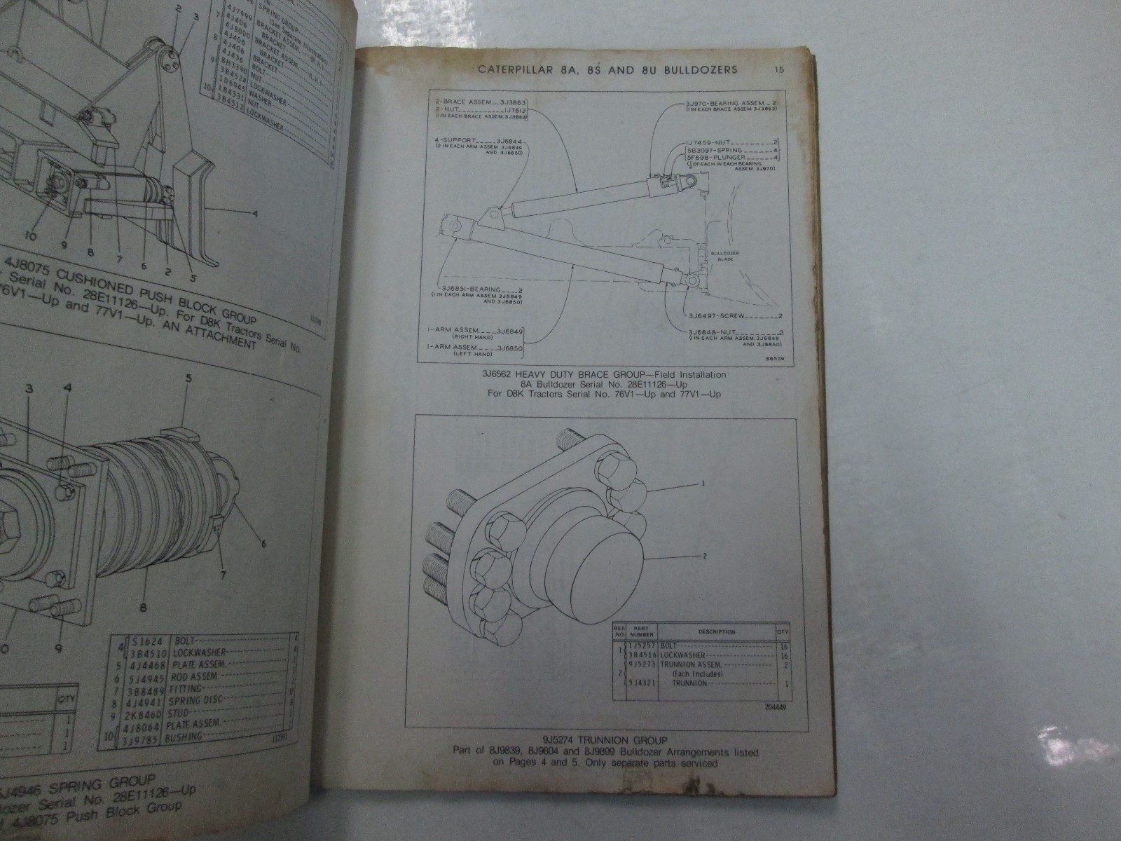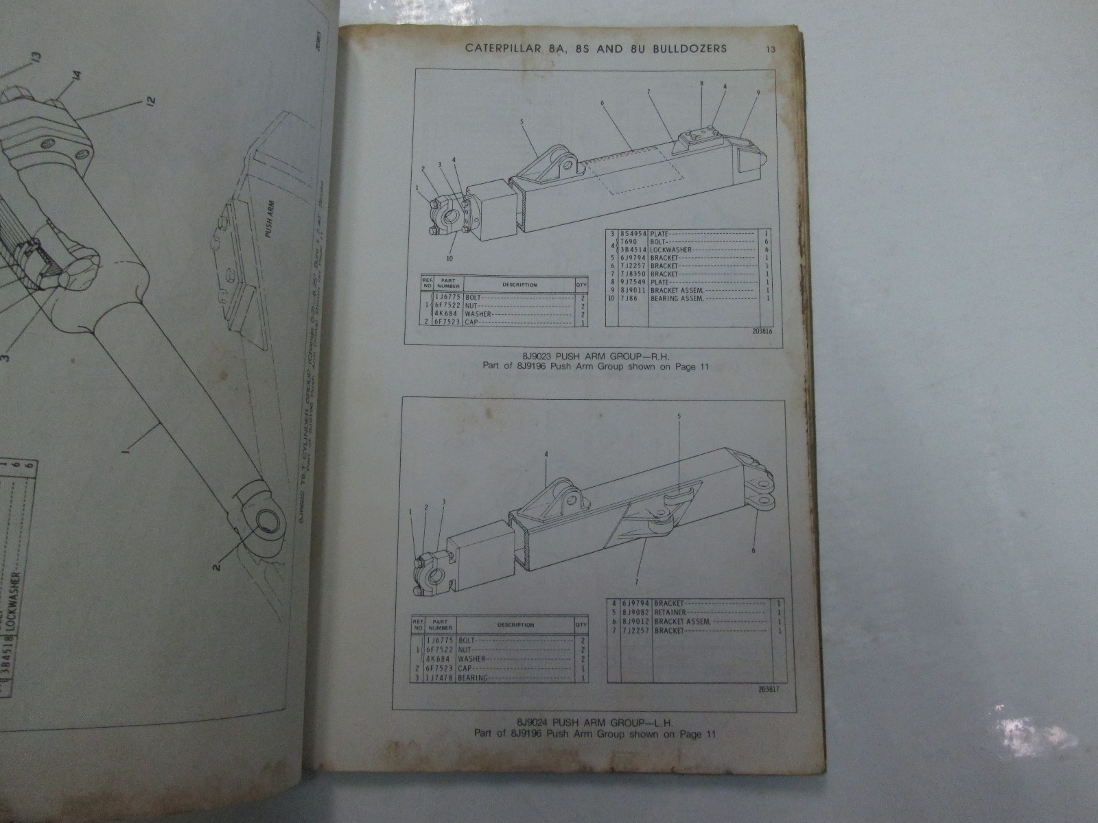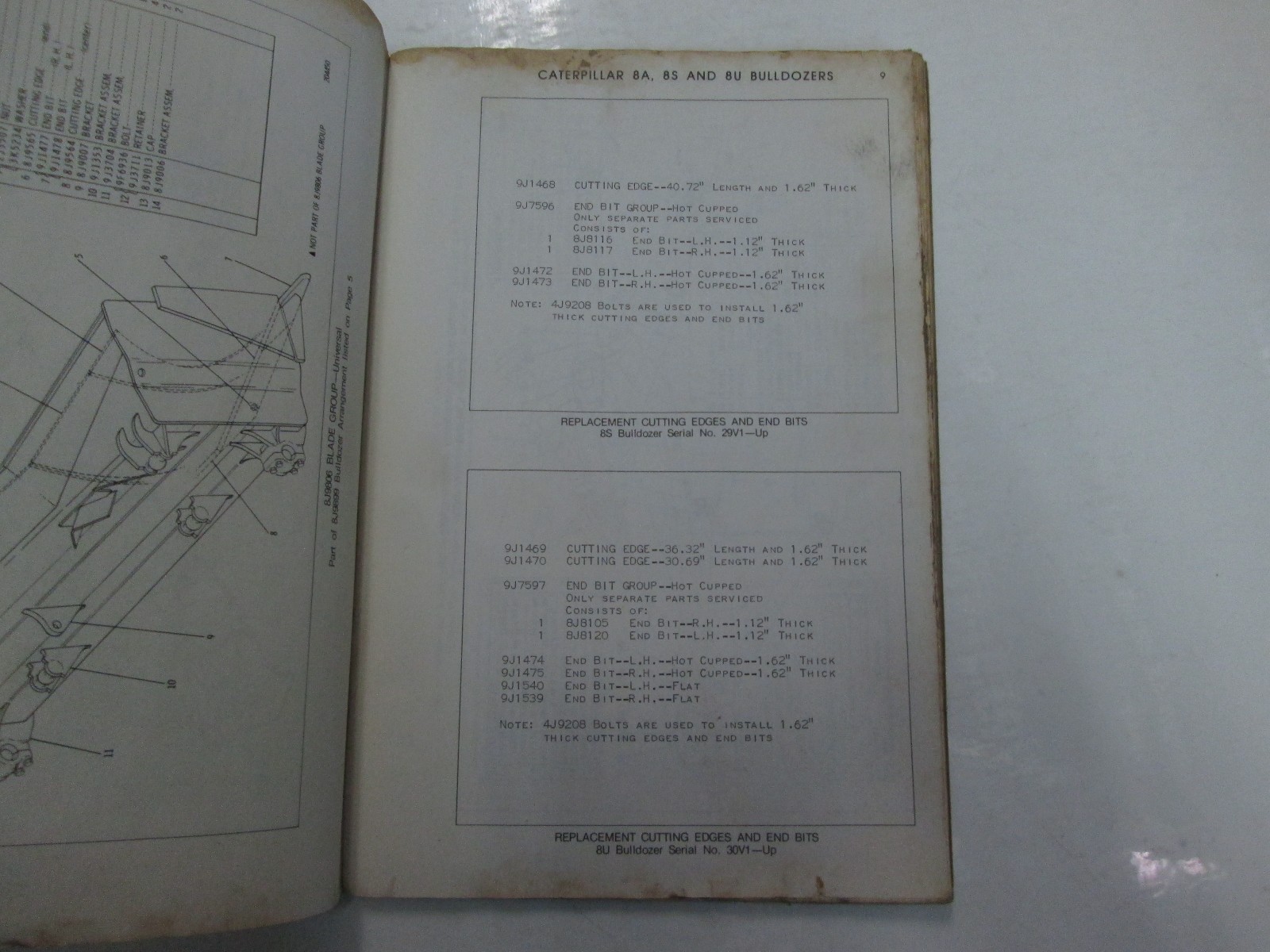 Caterpillar 8A 8S 8U Bulldozer Part Book Manual WATER DAMAGE SERIAL 28E11126-UP