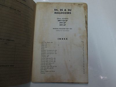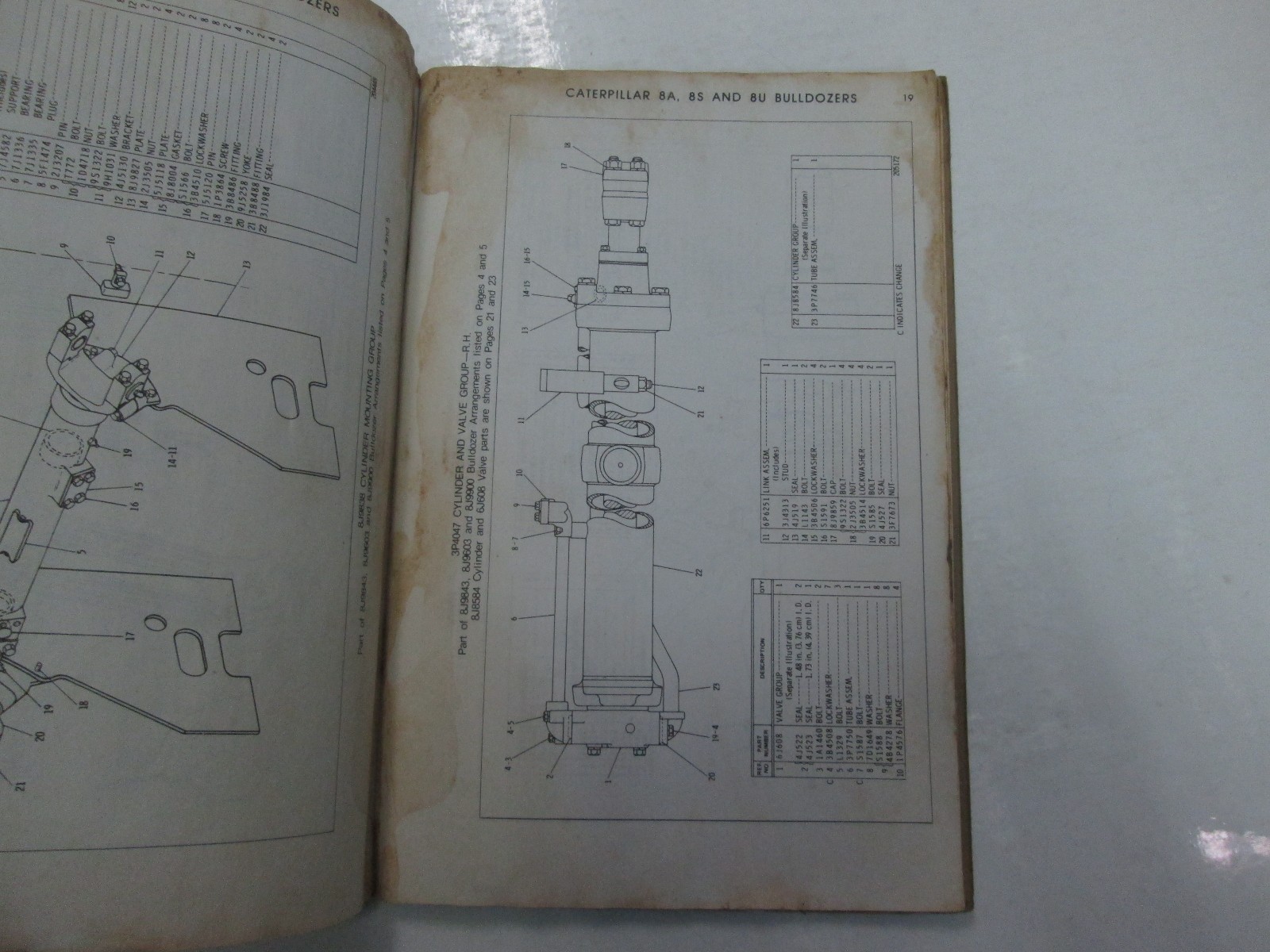 - Caterpillar 8A 8S 8U Bulldozer Part Book Manual WATER DAMAGE SERIAL 28E11126-UP