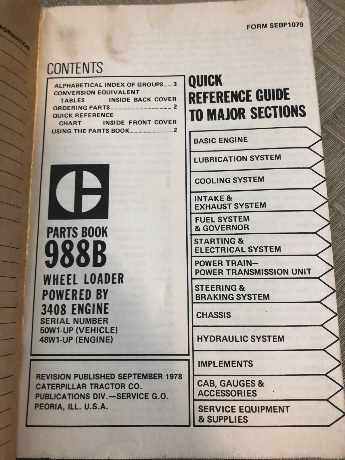 - Caterpillar 988B Ruota Carico Parti Libro Manuale Worn Usato OEM 50W1-UP 48W1-UP