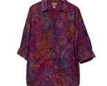 - Catherines Batik Print Cotton Blouse Button Up Size 1X 18/20W Purple Pink