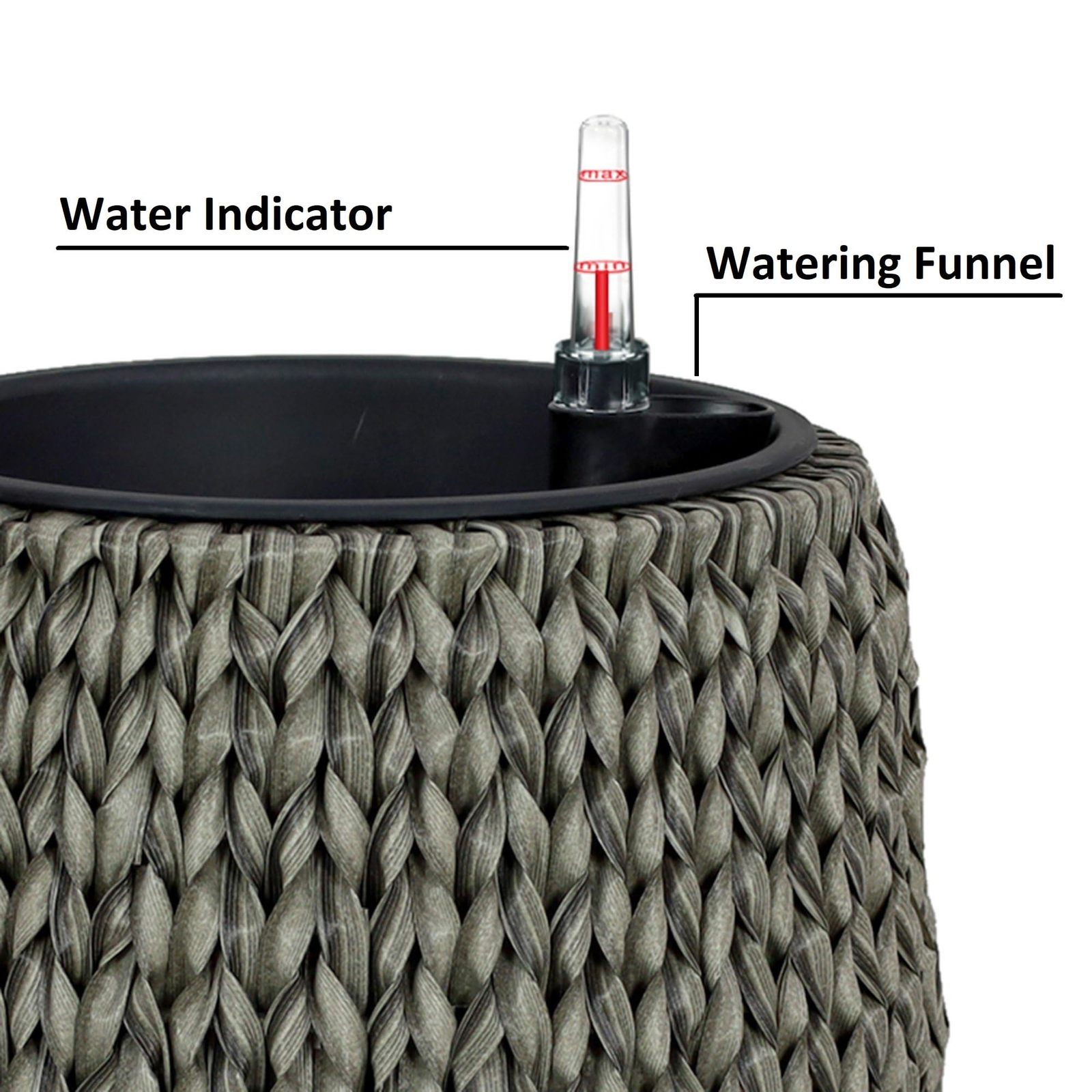 Catleza 13.4" Self-Watering Wicker Planter - Garden Decoration Pot - Gray - Roun