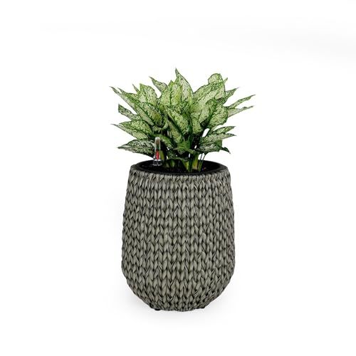 - Catleza 13.4" Self-Watering Wicker Planter - Garden Decoration Pot - Gray - Roun