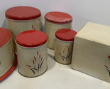 - CATTAILS Canister Set, Cake Pan & Bread Box UNIVERSAL CAMBRIDGE 1940-50's