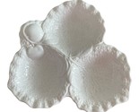 Elegant vintage fine bone china dish by **Caverswall**, England. Crafted in the shape of three overlapping leaves with raised veining detail and two small fruit accents, this glossy white dish is both decorative and functional. Perfect for serving candies, nuts, or relishes, or as a collectible display piece.