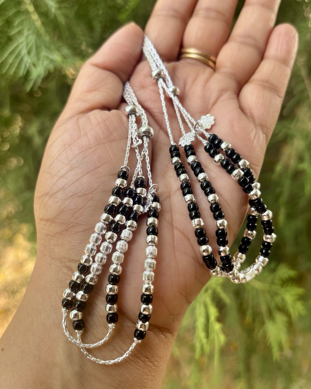 Cavigliera malocchio argento 999 assortita 2 pezzi, amuleto regolabile...