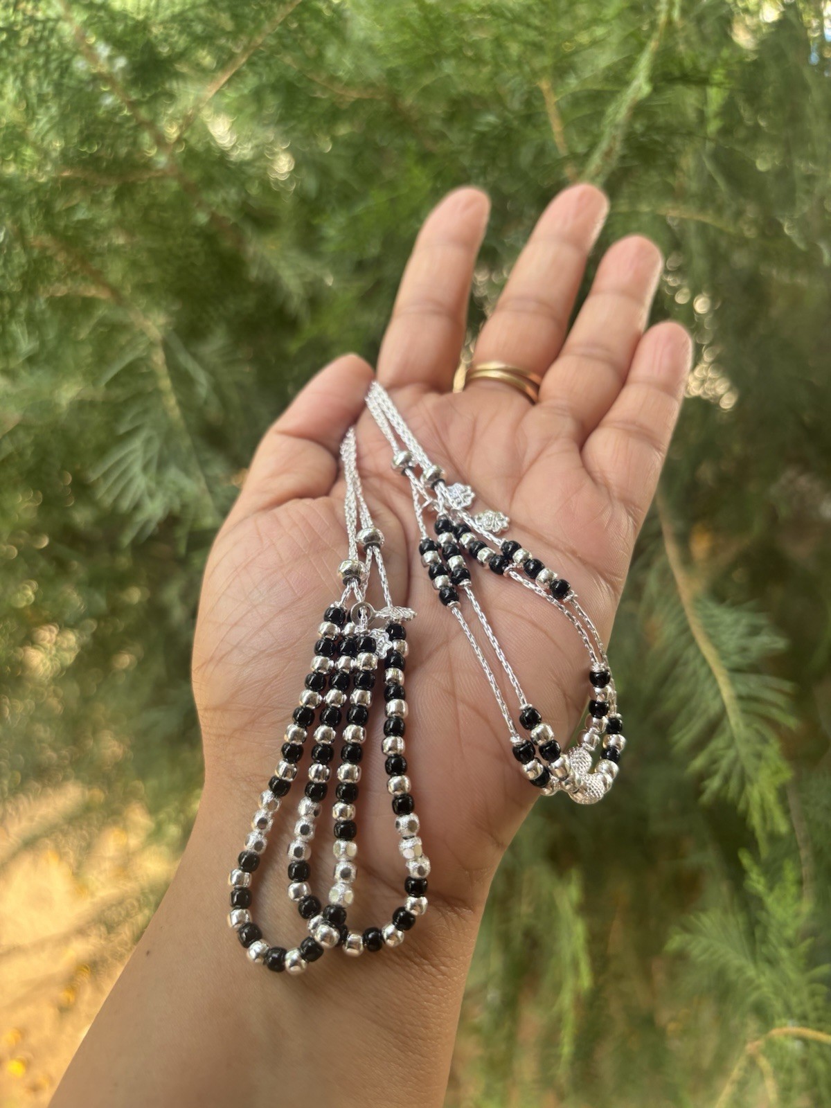 Cavigliera con perline nere