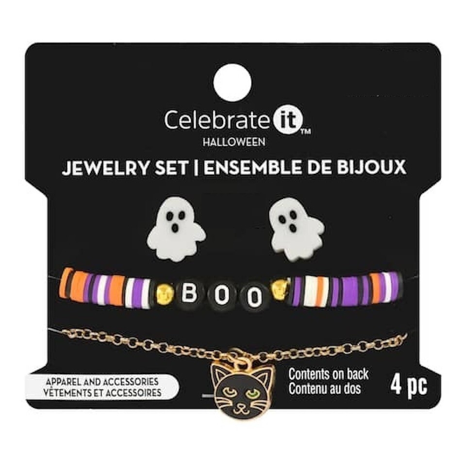 - Celebrate It Halloween Boo Earrings, Bracelet, and Necklace Jewelry Set Ensemble