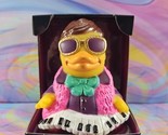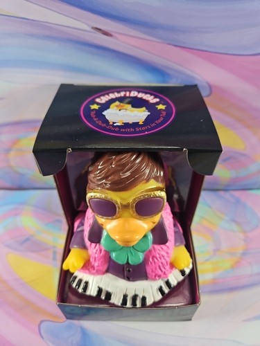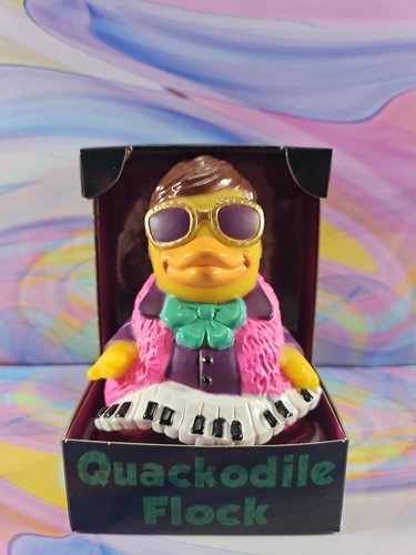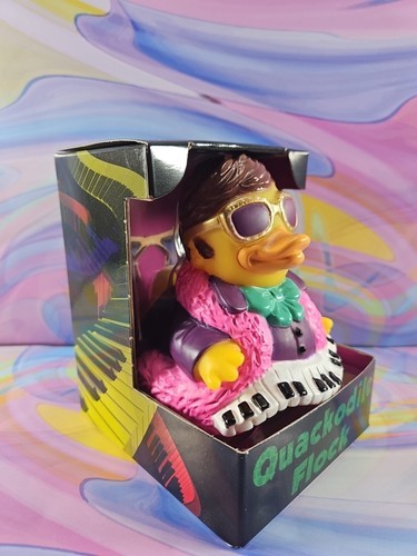 This is a collectible Elton John-inspired "Quackodile Flock" "Crocodile Rock" rubber duck by Celebriducks. New and unremoved from display box - it's a great piece of unique Elton John merchandise for a big fan.