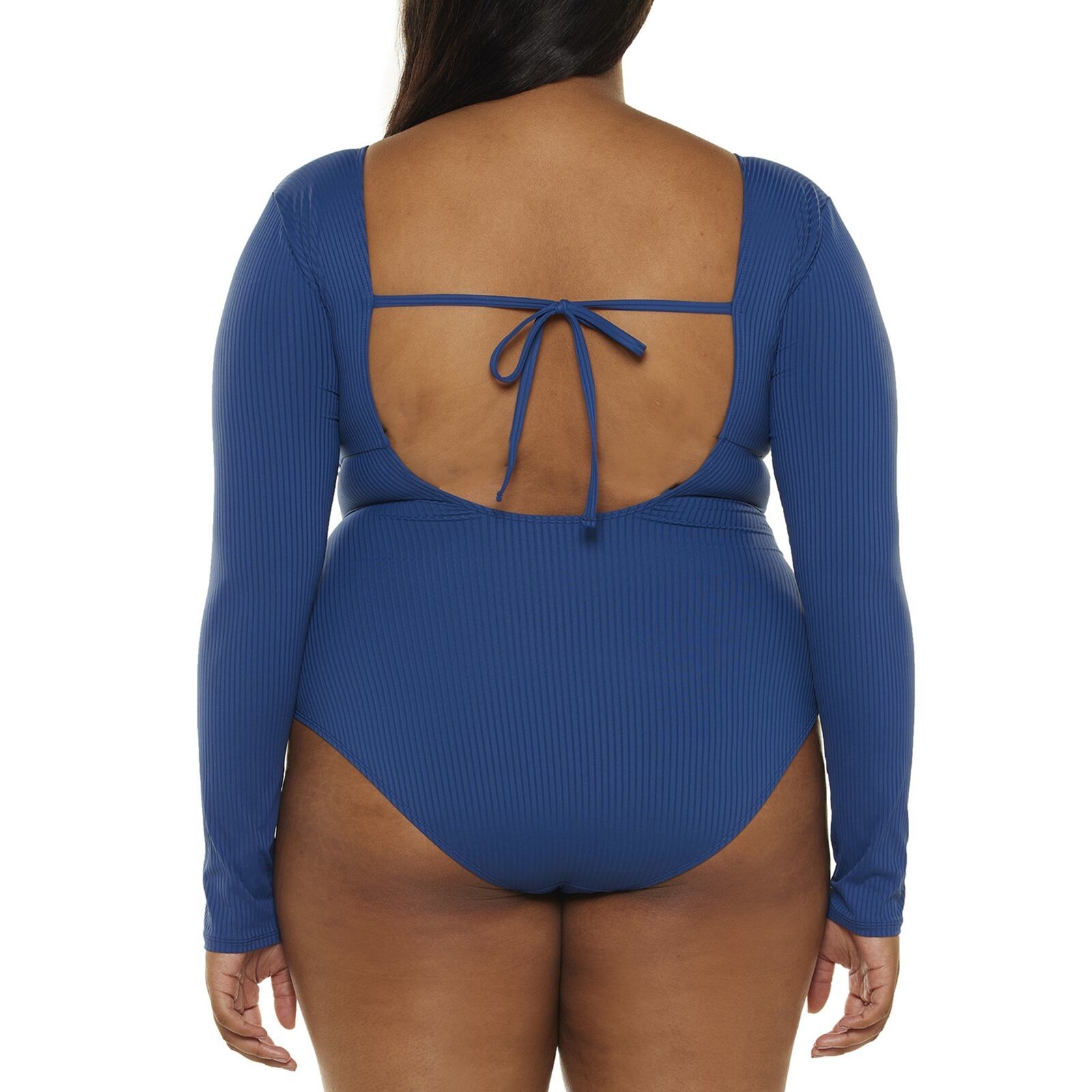 Think Pink in this ribbed fashion one piece rash guard from Celebrity Pink! Includes a flattering high leg silhouette with adjustable back tie and removable cups. It is lined with recycled polyester (sleeves are unlined) and the shell is made from 84% Nylon and 16% Spandex. Imported. Celebrity Pink - California-inspired swimwear designed for the girl who values both fashion and quality.