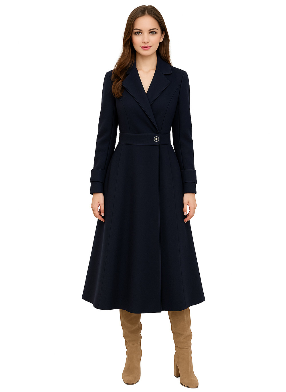 - Celebrity Style Ivanka Inspired Notched Collar Mid-Length Wool Coat in Navy