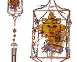 ? Illuminate your space with the mystical beauty of the Celestial Votive Candle Holder Wind Chime. This enchanting design unites the radiant Sun and serene Moon in perfect celestial harmony, accented with vibrant floral patterns, shimmering art glass, and sparkling gemstones. Crafted with warm copper metal tones, it features a built-in tea light votive that casts a gentle glow while the chimes create a soothing, melodic resonance in the breeze.