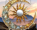 - Celestial Sun & Moon Faux Stained Glass Acrylic Art Suncatcher – 9in Flat Panel