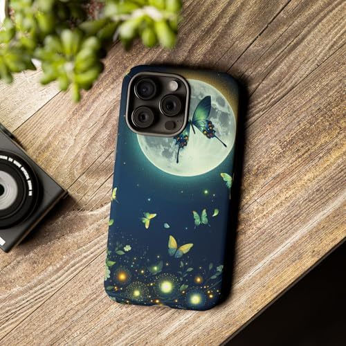 This celestial phone case features a beautiful design of fireflies and butterflies, giving off a whimsical and enchanting vibe. Perfect for those who appreciate nature-inspired artwork and want to protect their phone with style. Ideal for individuals looking to add a touch of magic to their everyday lives. Relevant for birthdays, holidays, and special occasions. Care instructions: - Clean with a soft damp cotton or microfiber cloth (add a drop of dish soap if needed).