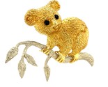 - Cellino 18k Zweifarbig Gold Koala Brosche Mit Onyx Akzent Ring Vintage