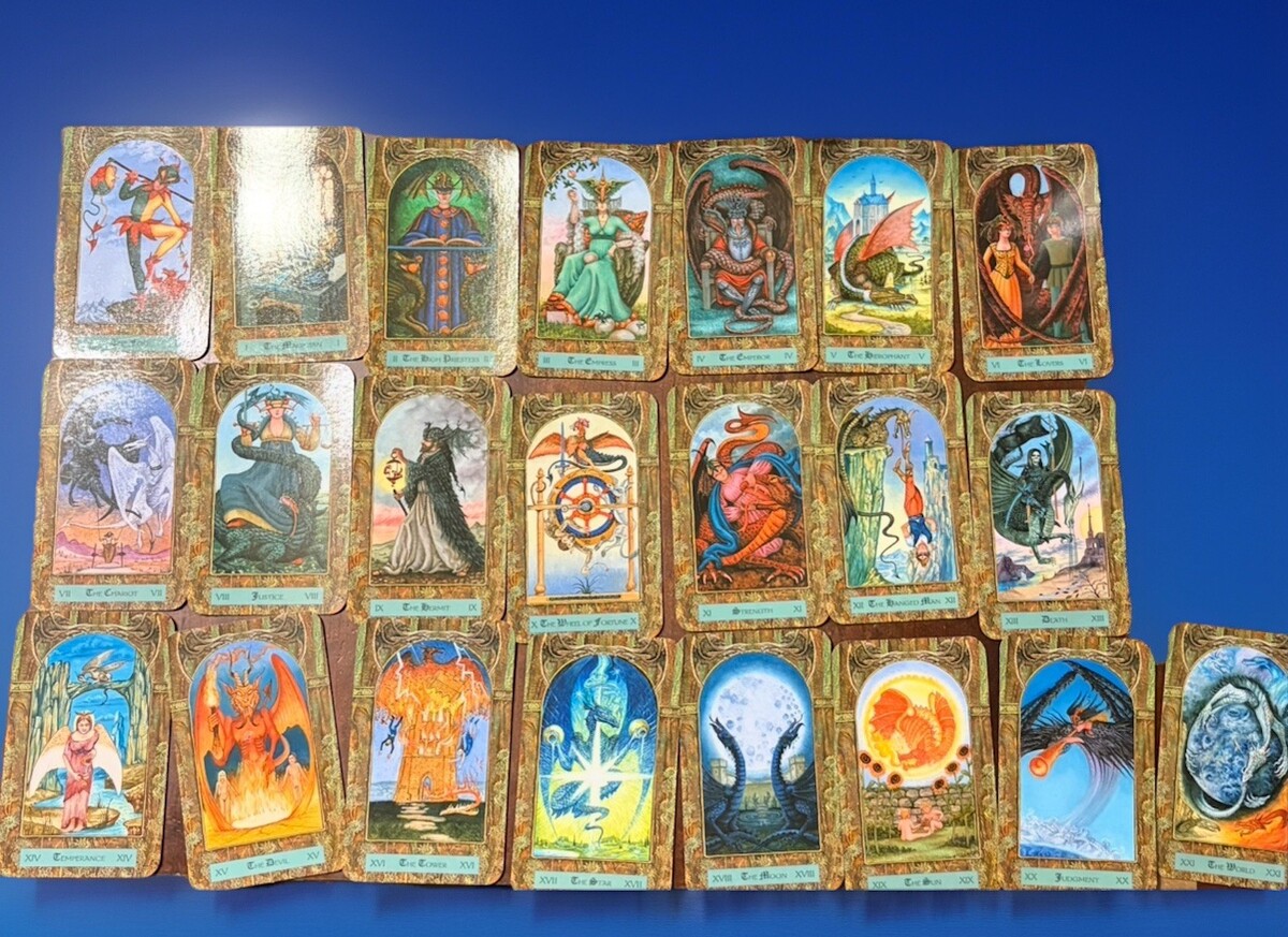 Complete set of 22 Major Arcana cards from the Celtic Dragon Tarot. Cards show light handling but no bends or heavy wear. Shipped within one day of payment.