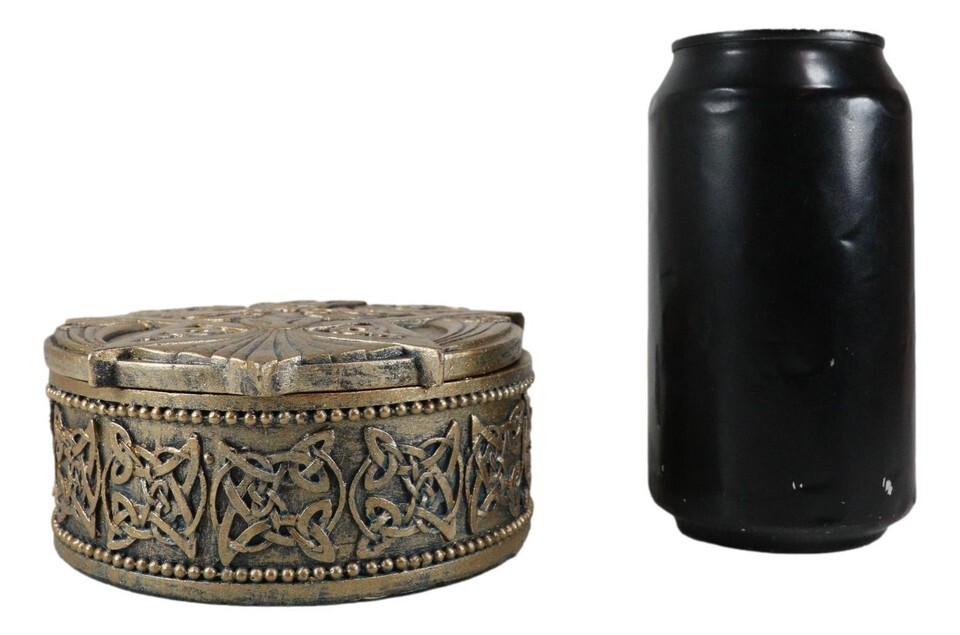? Introducing our Celtic Raven Pentacle Round Decorative Box, a treasure trove of mysticism and elegance. This exquisite box is a testament to the rich Celtic heritage, adorned with sacred symbols that resonate with ancient wisdom and spiritual significance. The intricate Celtic rune knotwork and the powerful symbolism of the raven and pentacle create a mesmerizing visual tapestry that draws you into a world of enchantment.
