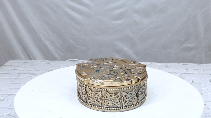 ? This Raven Pentacle Round Decorative Box is made of designer composite resin, hand painted and polished individually. Color tone may vary slightly from pictures.