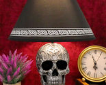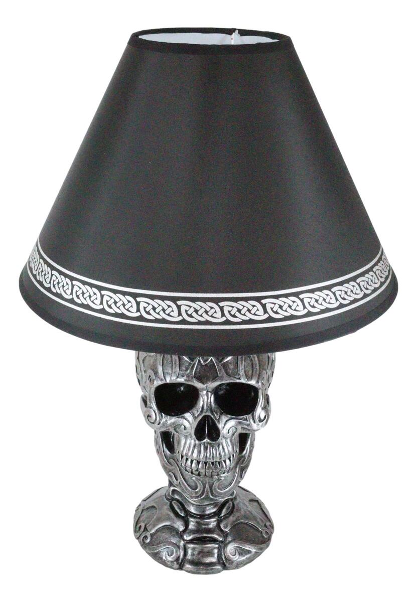 ? This Celtic Knotwork Holy Grail Skull Table Lamp comes with the Black Fabric Shade as pictured. Made of polyresin, hand painted and polished, the quality finish is superb! Because all our products are individually hand painted work of art, the color tone may vary slightly from the pictures.