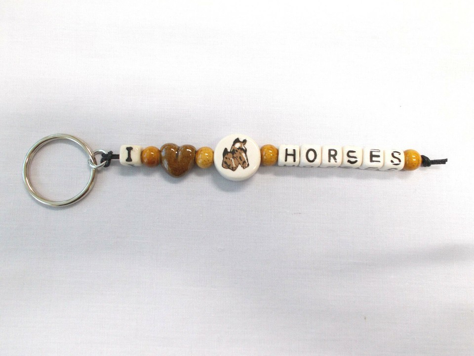 - CERAMIC BEADED HORSE DISC I LOVE HEART SHAPE TEXT LETTERS KEY CHAIN KEY RING