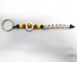 - Ceramic Mushroom Disc Bead and Shrooms Text Letters Hippie Beaded Key Ring