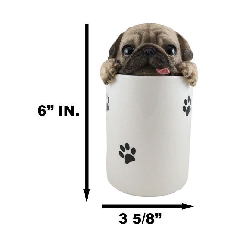 Ebros Ceramic Pug Puppy Dog Hiding and Peeking Dry Storage Jar With Paw Prints Decor