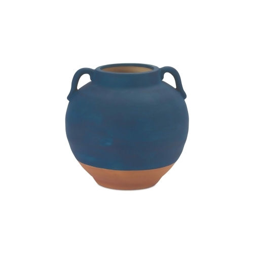 Bring timeless elegance to your home with this 7" Blue Ceramic Urn Vase featuring warm terra cotta accents. Whether placed on a shelf, mantel, or dining table, this classic urn-style vase adds depth, color, and a sophisticated touch to your decor. The cool navy tones beautifully contrast with the rustic terra cotta finish, making it perfect for showcasing fresh blooms or standing alone as a decorative centerpiece.