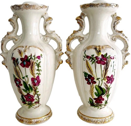 - Ceramic Victorian Style Vases Lot Of 2 Hand Painted Signed Maine Alexis SS