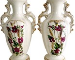 Ceramic Victorian Style Vases Lot Of 2 Hand Painted Signed Maine Alexis SS