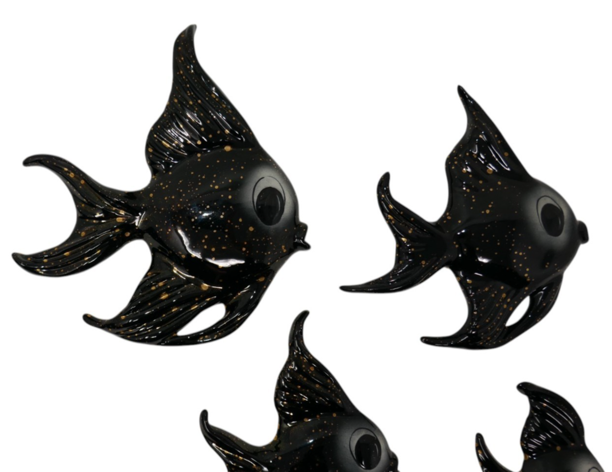 - Ceramicraft 1950's MCM Black & Gold Angel Fish Wall Hanging