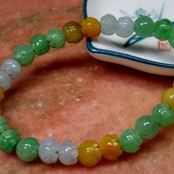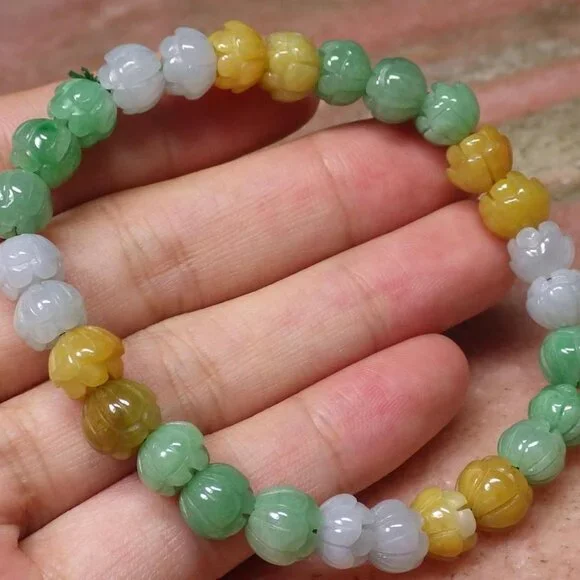 - Certified 3 Color Natural A JADE Jadeite Beads Bangle Lotus Flower Bracelet 手链